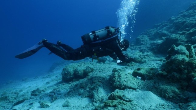 A diver photographs a prehistoric anchor of the island of Karpathos in Greece (Picture: S. Apostolopoulos/Greek Ministry of Culture/Cover Media)