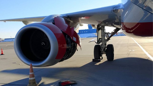 Videos and images circulating online show missing parts of the right engine's metal covering.